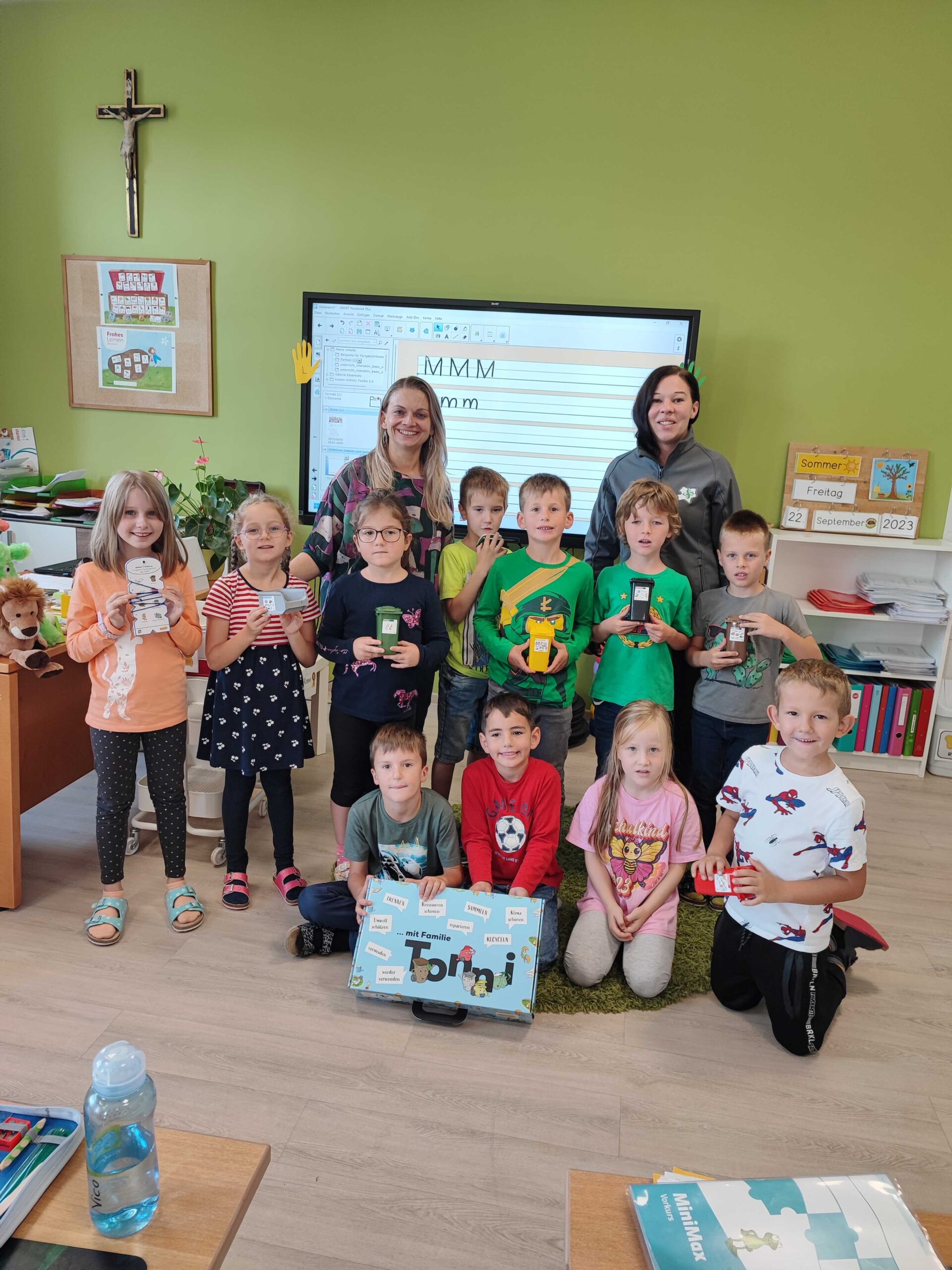 Frau Conny Lachmann besuchte uns in der Schule und überreichte uns den AnTonnia Spielekoffer. Der Koffer enthält verschiedenste Spiele und Methodiken, wie etwa ein Bandolino, Quartett, Malbücher und Vieles mehr, womit sich die Kinder interaktiv mit der Thematik der Mülltrennung auseinandersetzen und beschäftigen können.