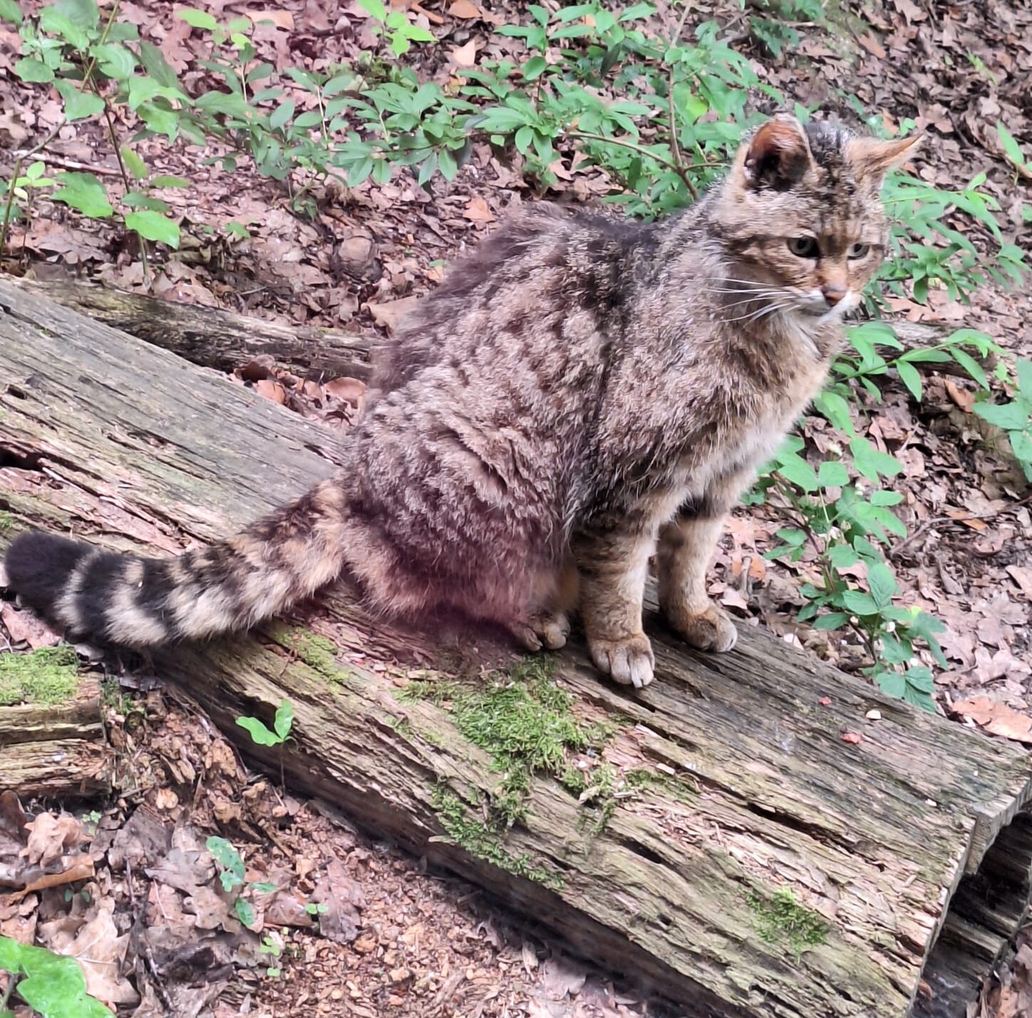 Umgang mit dem Kompass. Wir hatten Glück und konnten eine der scheuen Wildkatzen im Gehege beobachten
