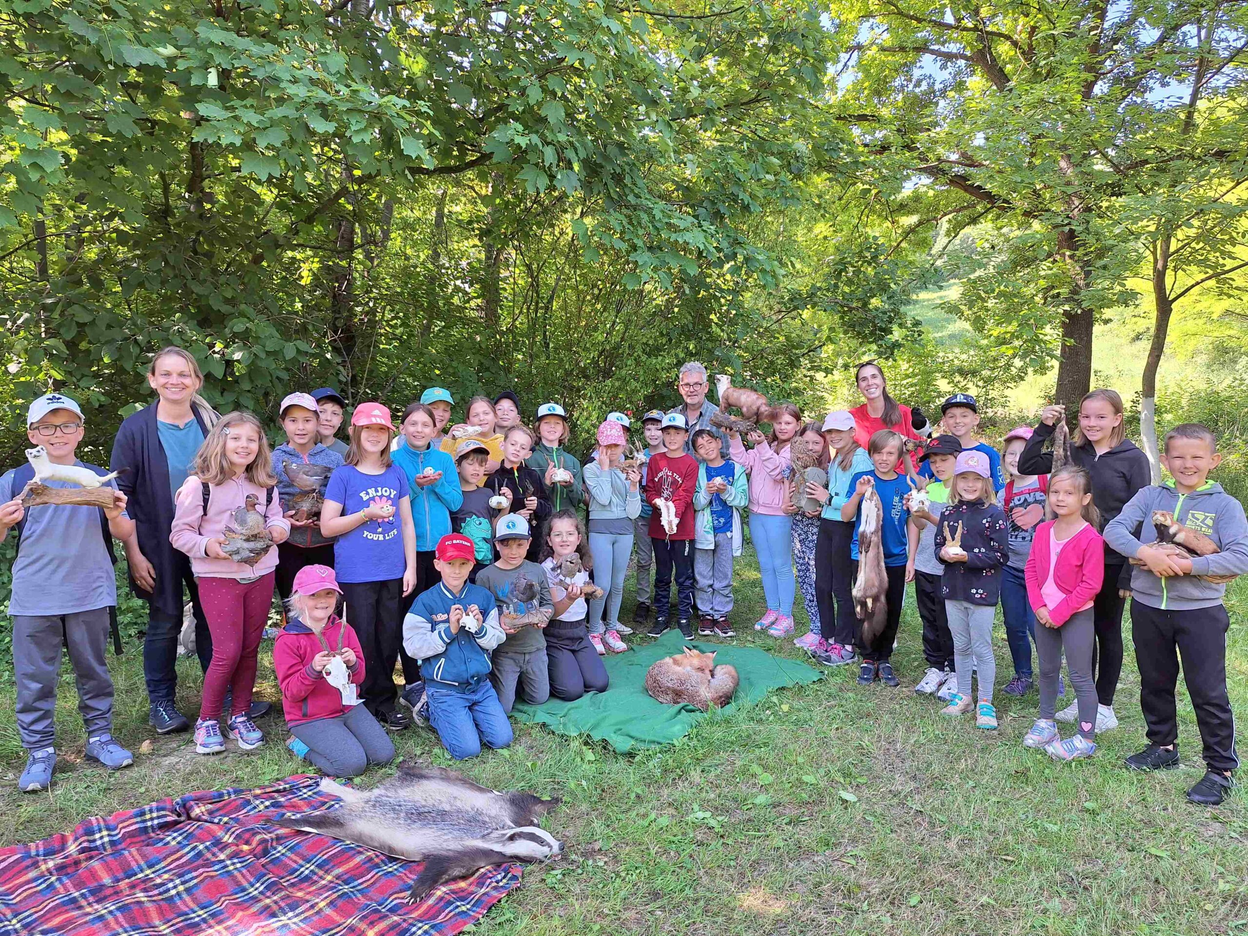 Er bot den Kindern einen großartigen Einblick in die Lebensweisen der Waldtiere, die Unterschiede und Merkmale einzelner Bäume und erzählte vielerlei Wissenswertes zum Thema Wald.