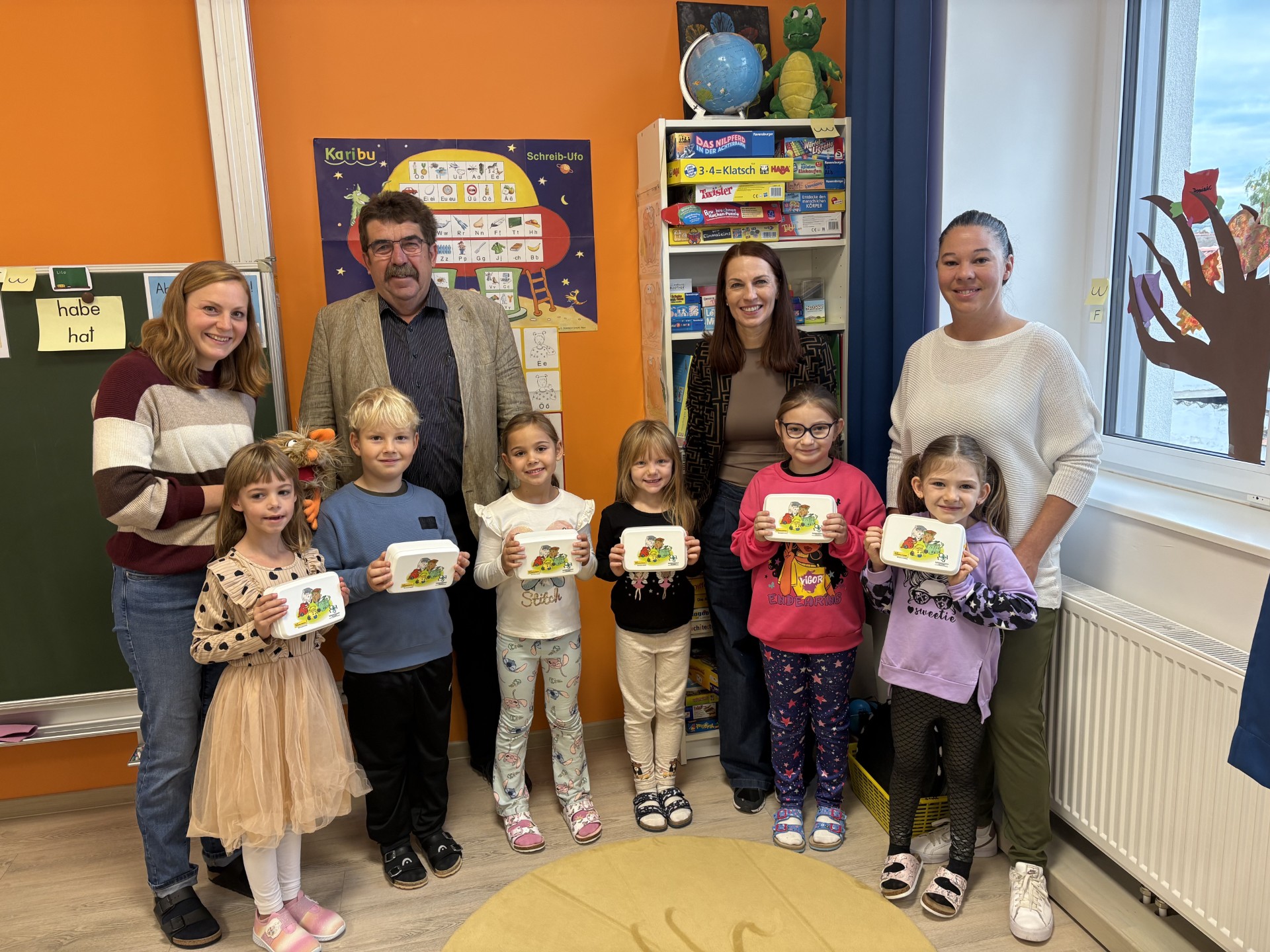 Am 07.10.2025 bekamen unsere Erstklässlerinnen und Erstklässler neue Jausenboxen für einen umweltfreundlichen Schulstart.